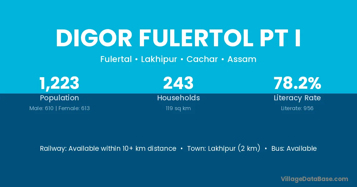 Lakhipur (2 km) is the nearest town to Digor Fulertol Pt I village for major economic activities and is located approximately 2 km away.