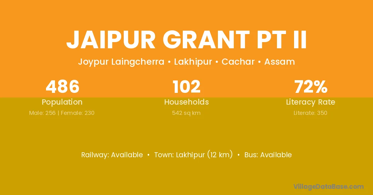 Lakhipur (12 km) is the nearest town to Jaipur Grant Pt Ii village for major economic activities and is located approximately 12 km away.