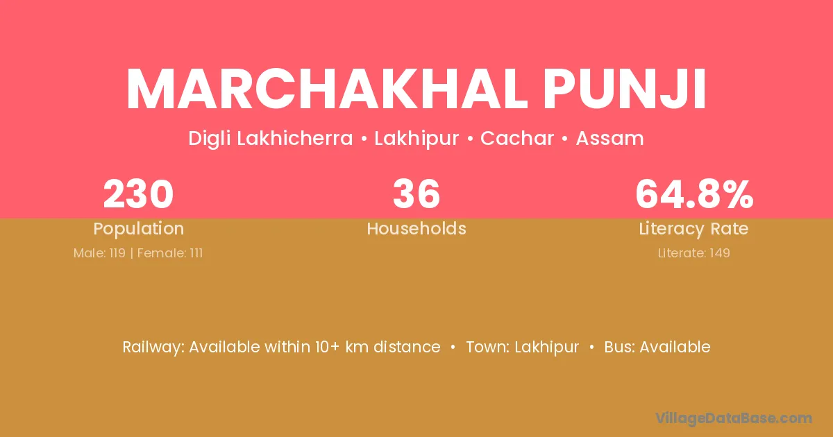 Marchakhal Punji village has a total population of 230 people, of which 119 are males and 111 are females.