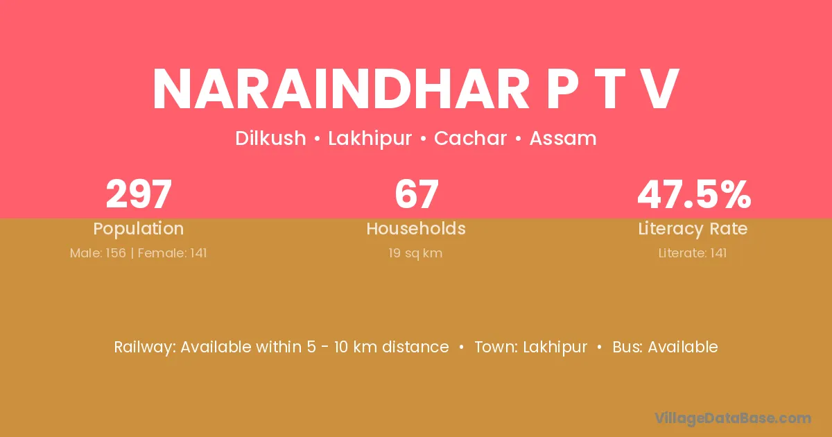 Naraindhar P T V village has a total population of 297 people, of which 156 are males and 141 are females.