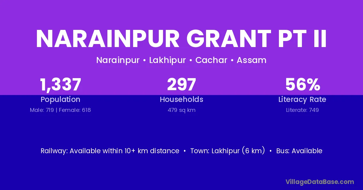 Lakhipur (6 km) is the nearest town to Narainpur Grant Pt Ii village for major economic activities and is located approximately 6 km away.