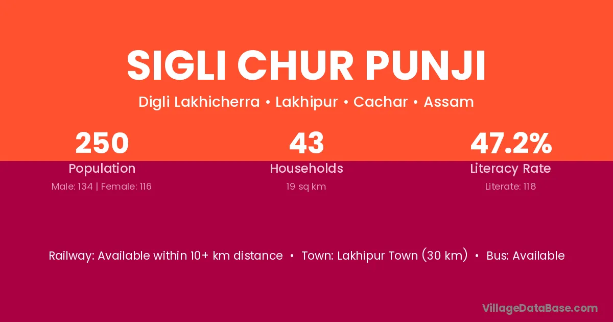 Sigli Chur Punji village has a total population of 250 people, of which 134 are males and 116 are females.