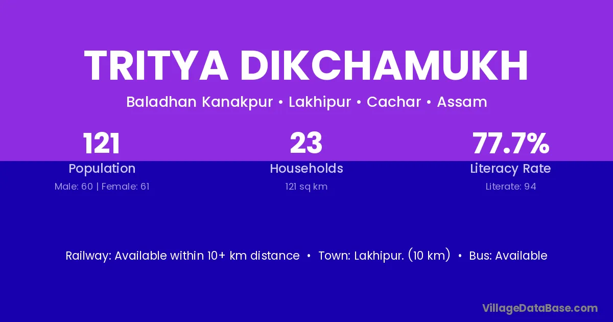 Lakhipur. (10 km) is the nearest town to Tritya Dikchamukh village for major economic activities and is located approximately 10 km away.