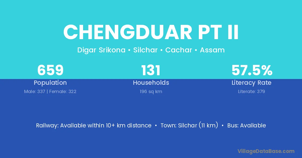 Chengduar Pt Ii village has a total population of 659 people, of which 337 are males and 322 are females.