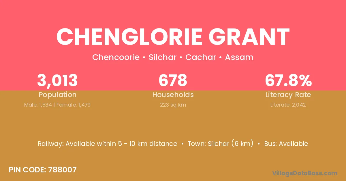 Silchar (6 km) is the nearest town to Chenglorie Grant village for major economic activities and is located approximately 6 km away.