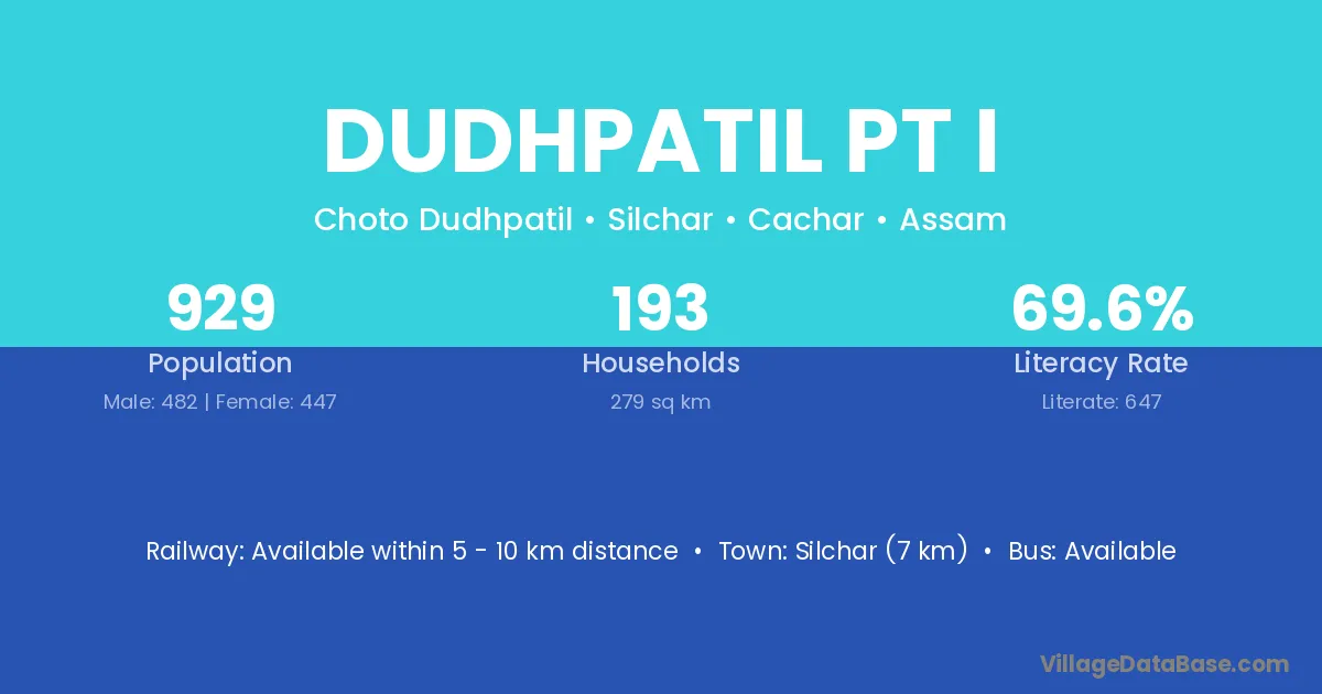 Silchar (7 km) is the nearest town to Dudhpatil Pt I village for major economic activities and is located approximately 7 km away.