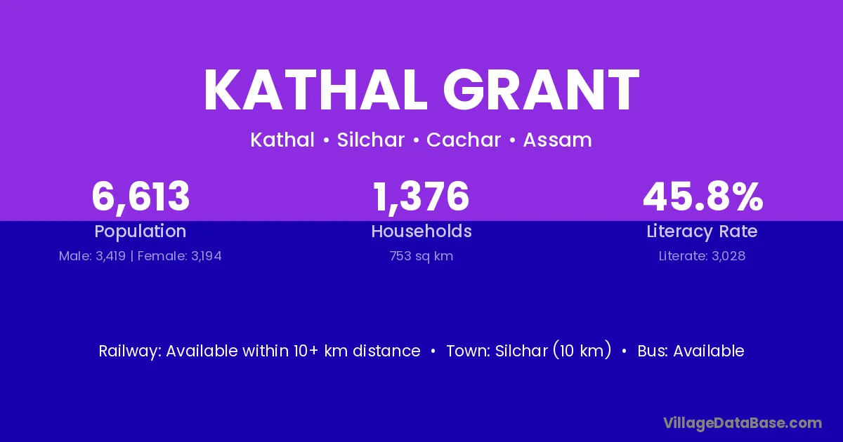 Silchar (10 km) is the nearest town to Kathal Grant village for major economic activities and is located approximately 10 km away.
