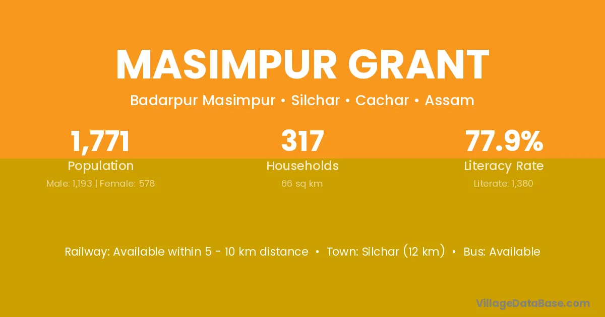 Silchar (12 km) is the nearest town to Masimpur Grant village for major economic activities and is located approximately 12 km away.