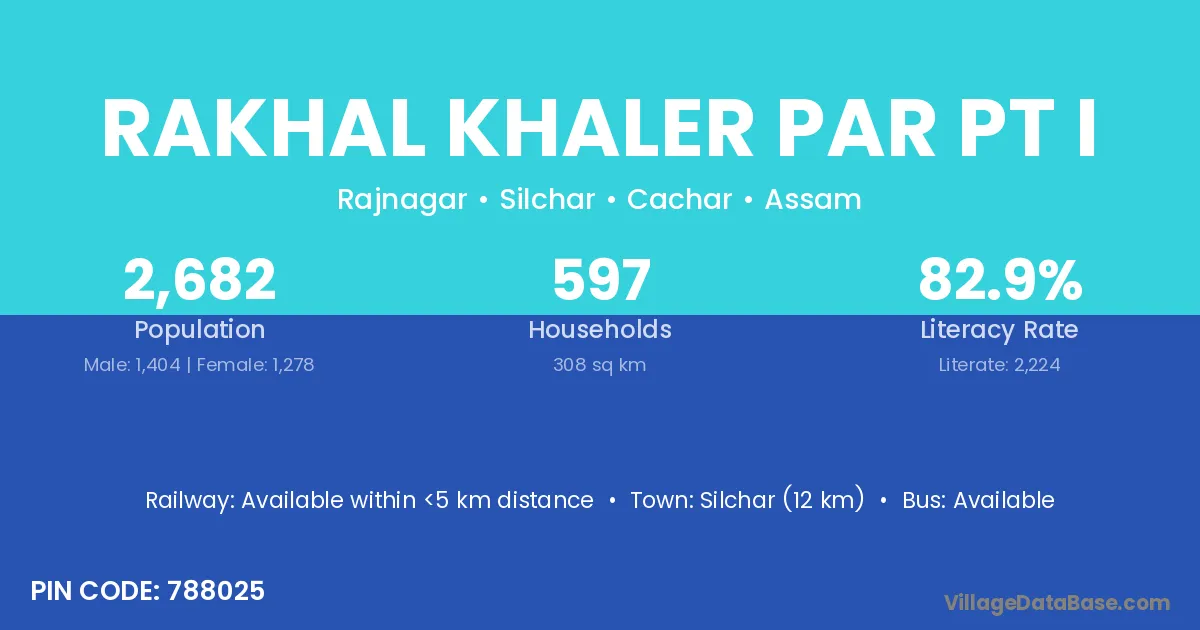 Silchar (12 km) is the nearest town to Rakhal Khaler Par Pt I village for major economic activities and is located approximately 12 km away.