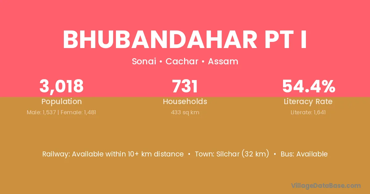 Silchar (32 km) is the nearest town to Bhubandahar Pt I village for major economic activities and is located approximately 32 km away.