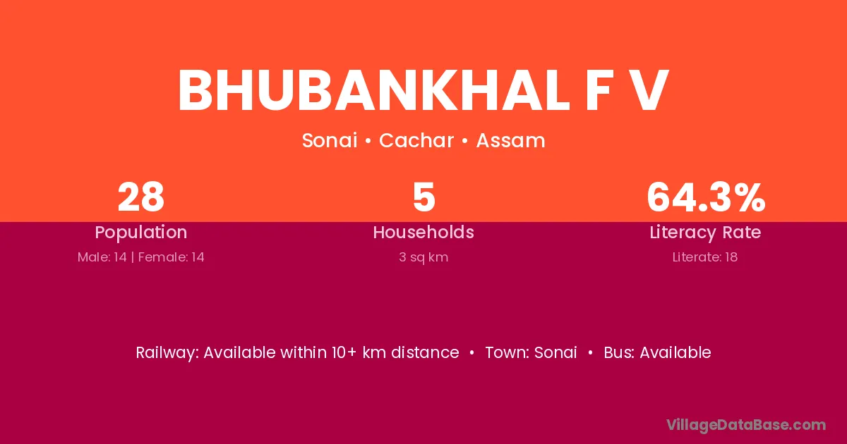 Bhubankhal F V village has a total population of 28 people, of which 14 are males and 14 are females.