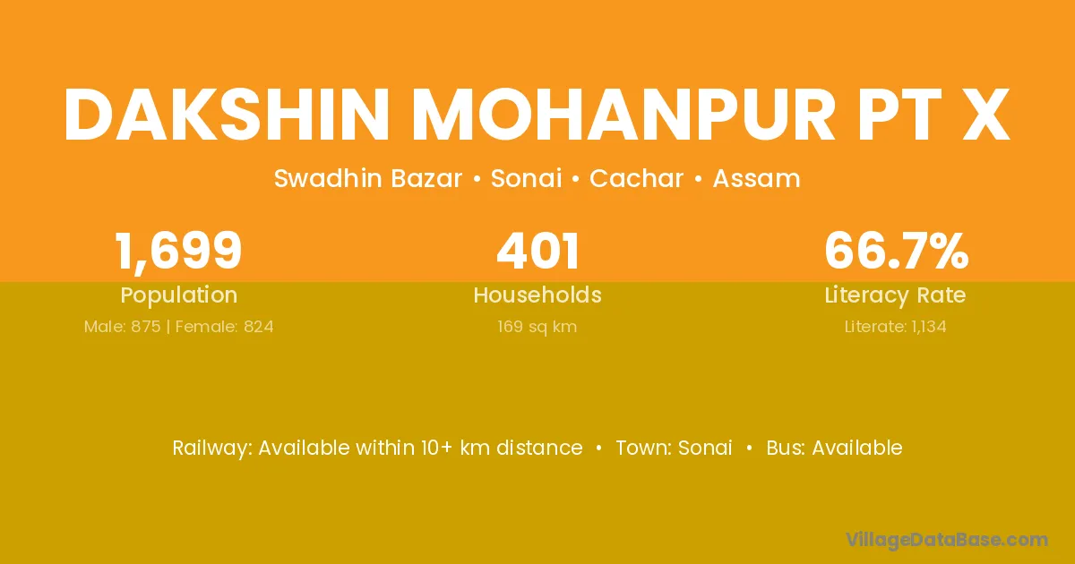Sonai is the nearest town to Dakshin Mohanpur Pt X village for major economic activities