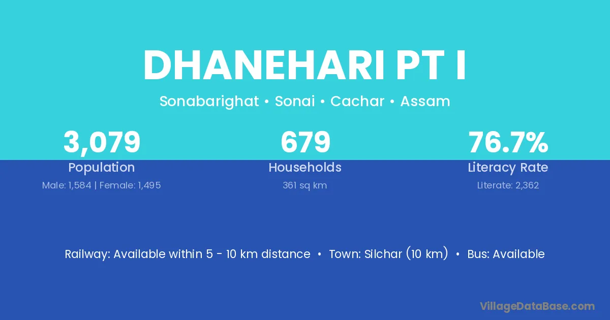 Silchar (10 km) is the nearest town to Dhanehari Pt I village for major economic activities and is located approximately 10 km away.