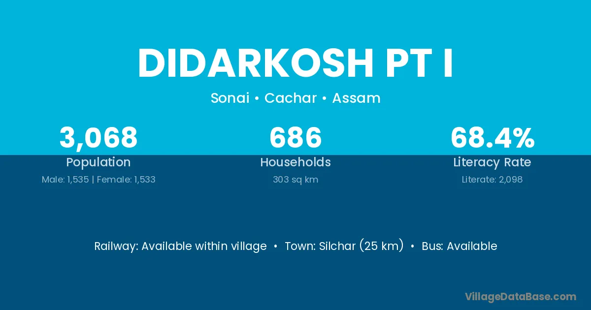 Silchar (25 km) is the nearest town to Didarkosh Pt I village for major economic activities and is located approximately 25 km away.