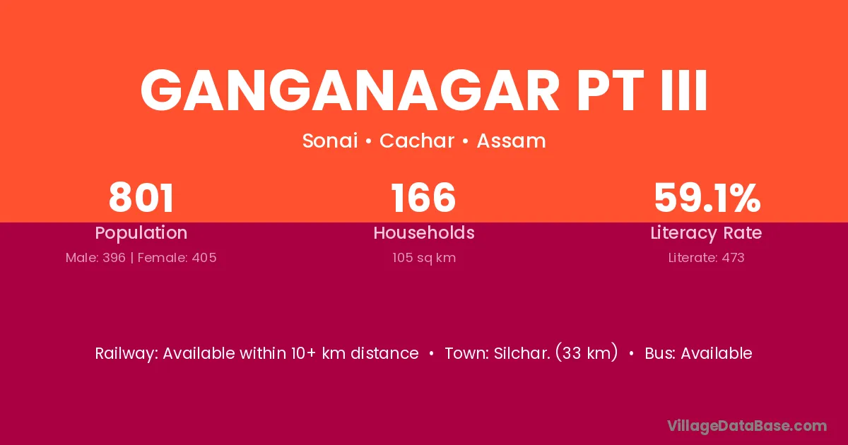 Silchar. (33 km) is the nearest town to Ganganagar Pt Iii village for major economic activities and is located approximately 33 km away.