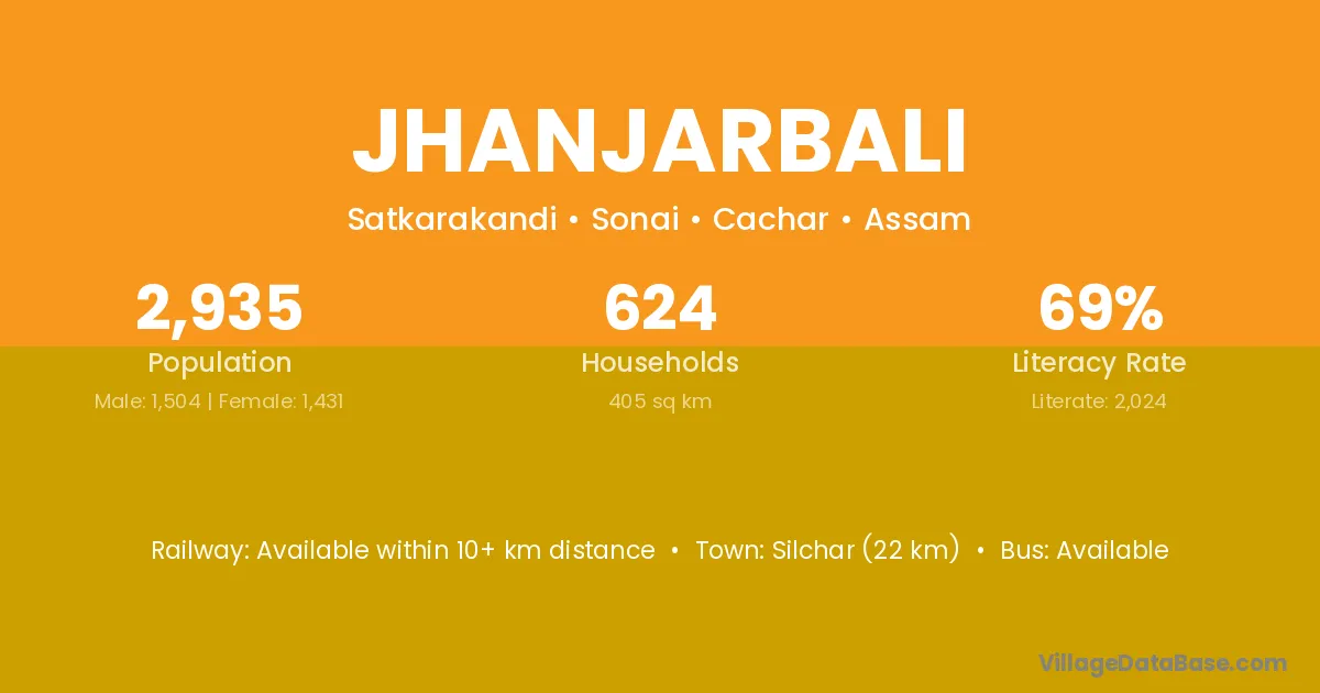 Silchar (22 km) is the nearest town to Jhanjarbali village for major economic activities and is located approximately 22 km away.