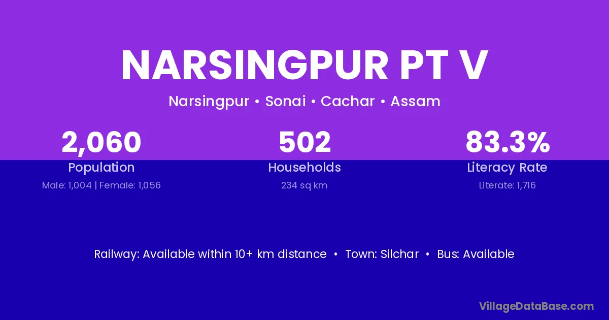 Silchar is the nearest town to Narsingpur Pt V village for major economic activities