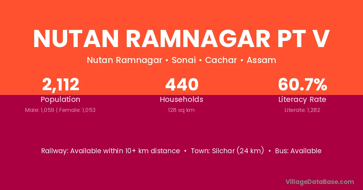 Silchar (24 km) is the nearest town to Nutan Ramnagar Pt V village for major economic activities and is located approximately 24 km away.