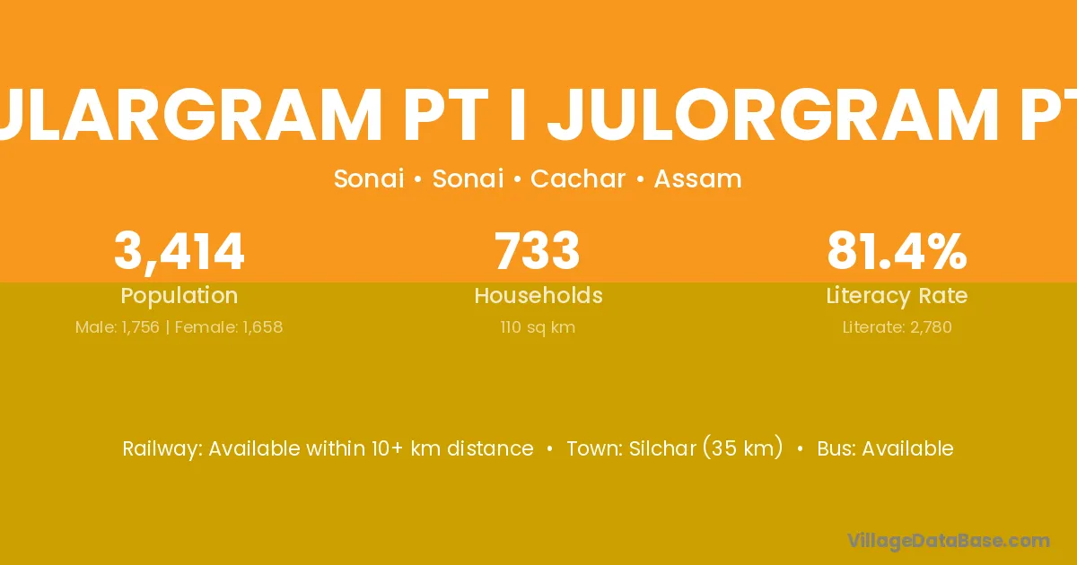 Silchar (35 km) is the nearest town to Tulargram Pt I Julorgram Pt I village for major economic activities and is located approximately 35 km away.