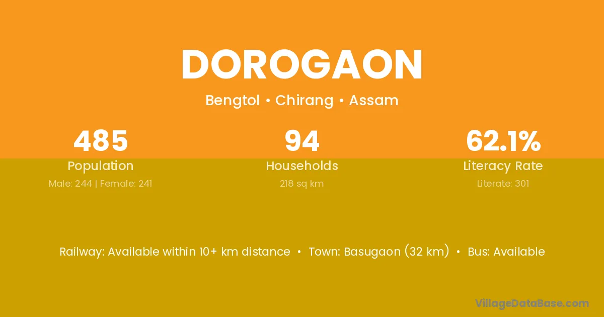 Dorogaon village is located in the Bengtol Subdivision of the Chirang district in Assam .