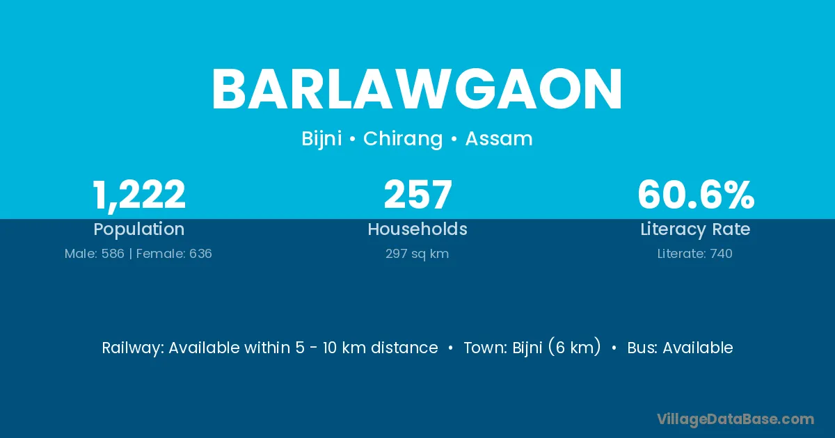 Bijni (6 km) is the nearest town to Barlawgaon village for major economic activities and is located approximately 6 km away.