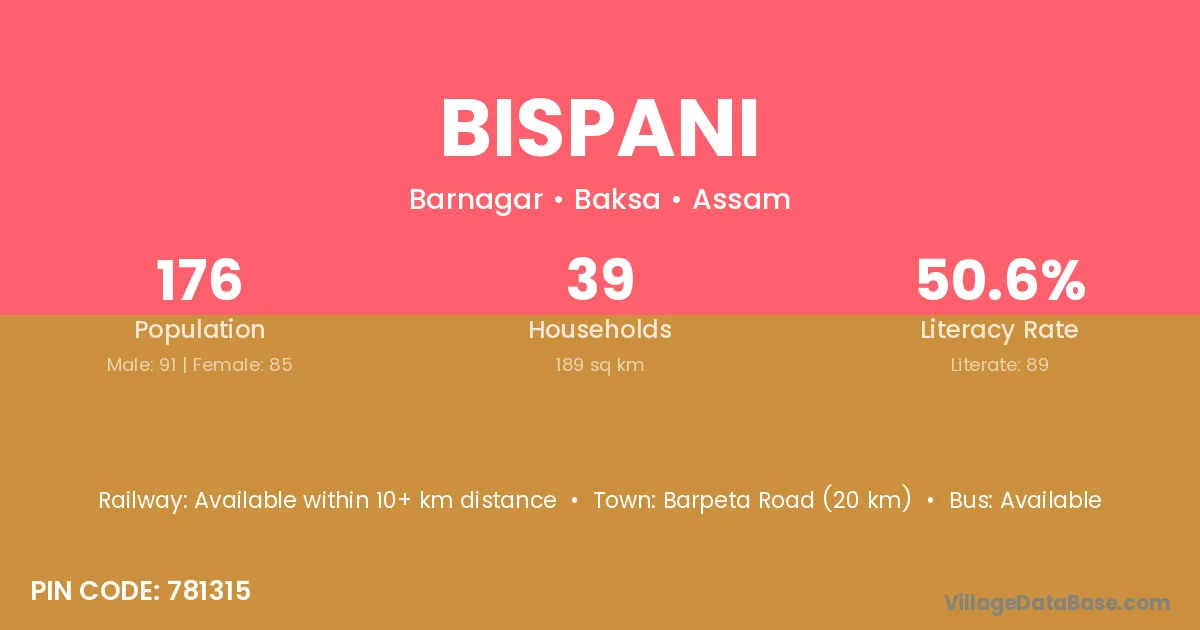 Bijni (17 km) is the nearest town to Bispani village for major economic activities and is located approximately 17 km away.