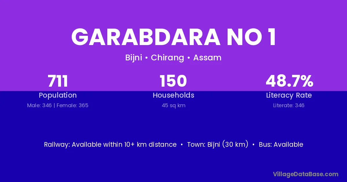 Bijni (30 km) is the nearest town to Garabdara No 1 village for major economic activities and is located approximately 30 km away.
