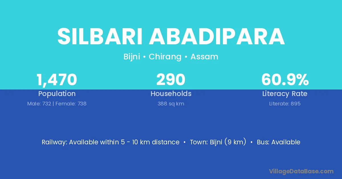 Silbari Abadipara village has a total population of 1,470 people, of which 732 are males and 738 are females.