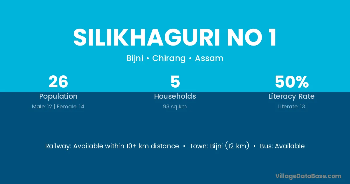 Silikhaguri No 1 village has a total population of 26 people, of which 12 are males and 14 are females.