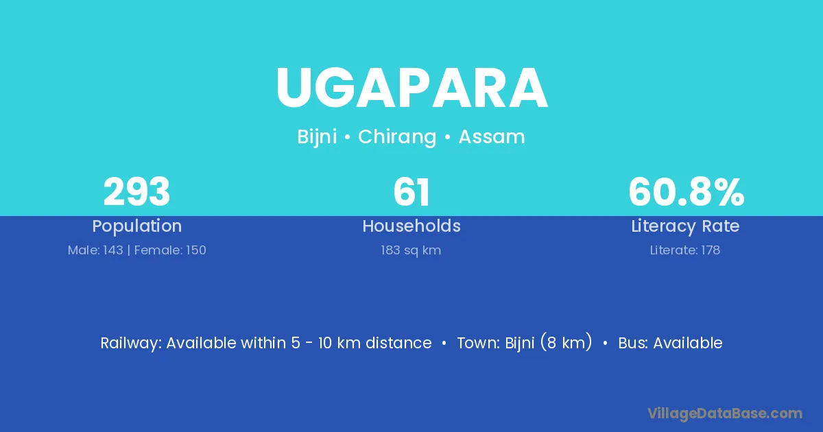 Bijni (8 km) is the nearest town to Ugapara village for major economic activities and is located approximately 8 km away.