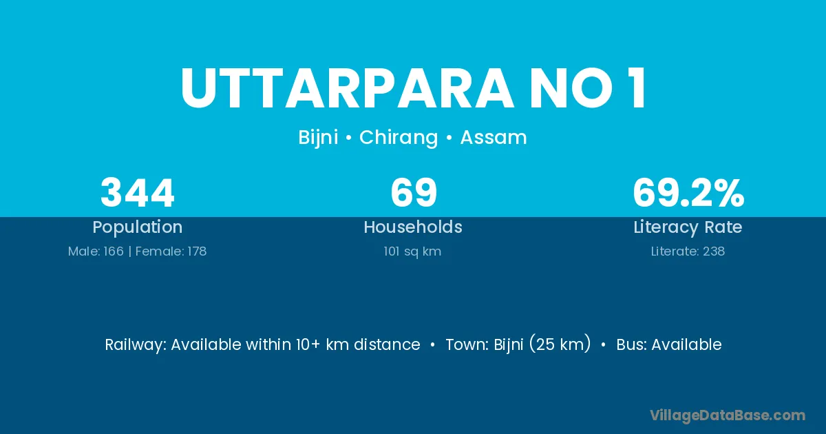 Bijni (25 km) is the nearest town to Uttarpara No 1 village for major economic activities and is located approximately 25 km away.