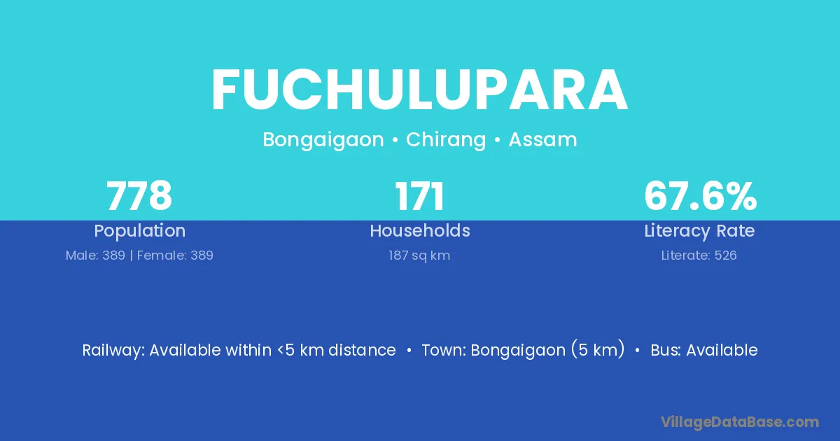 Bongaigaon (5 km) is the nearest town to Fuchulupara village for major economic activities and is located approximately 5 km away.