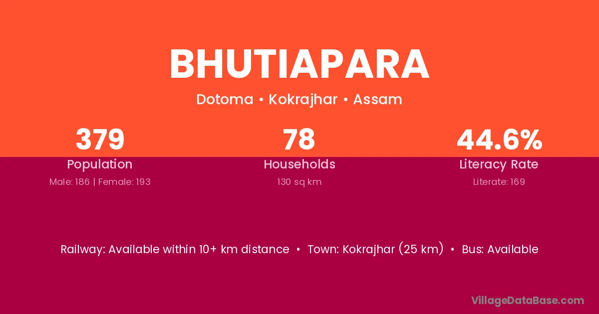 Basugaon (1 km) is the nearest town to Bhutiapara village for major economic activities and is located approximately 1 km away.