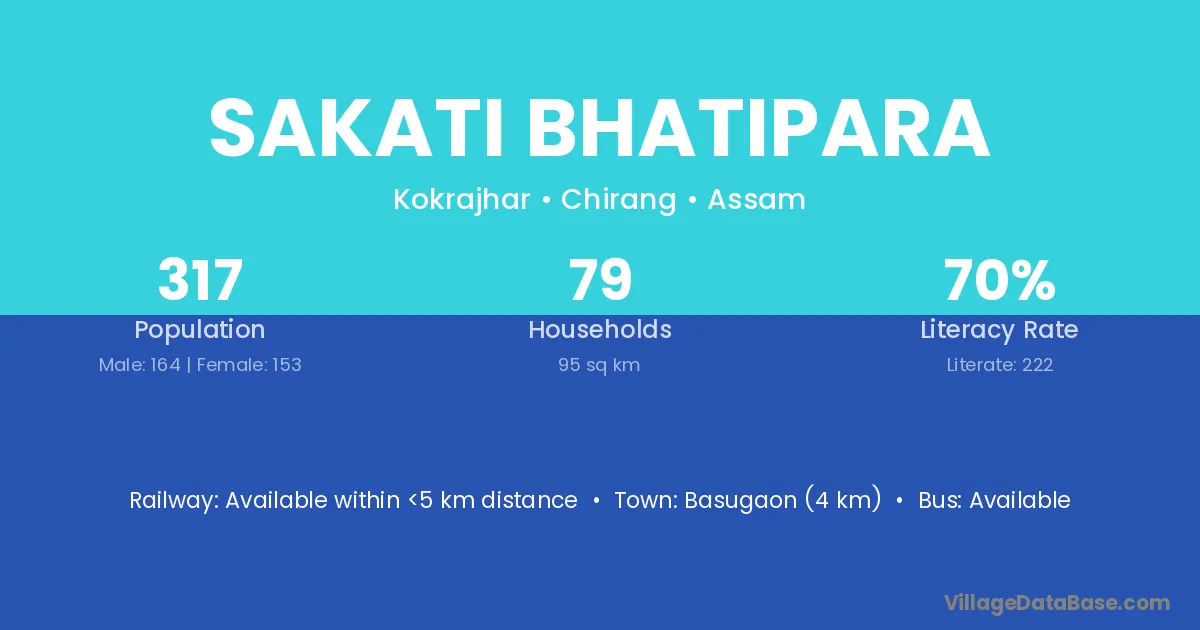 Sakati Bhatipara village has a total population of 317 people, of which 164 are males and 153 are females.