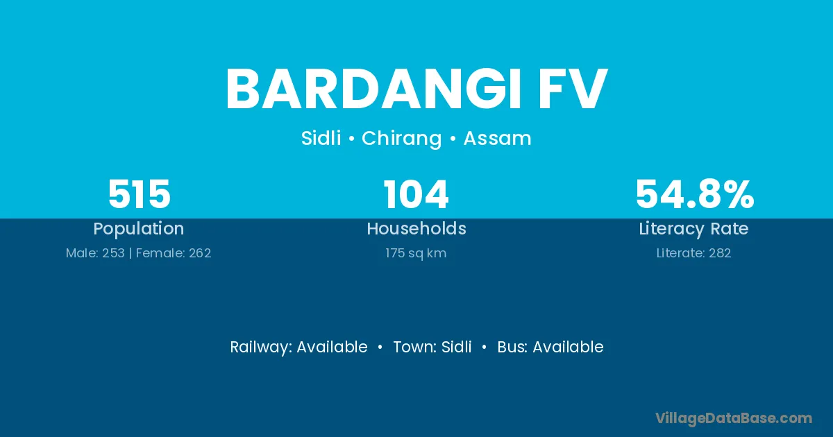 Bardangi Fv village has a total population of 515 people, of which 253 are males and 262 are females.