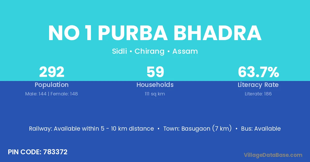 No 1 Purba Bhadra village has a total population of 292 people, of which 144 are males and 148 are females.