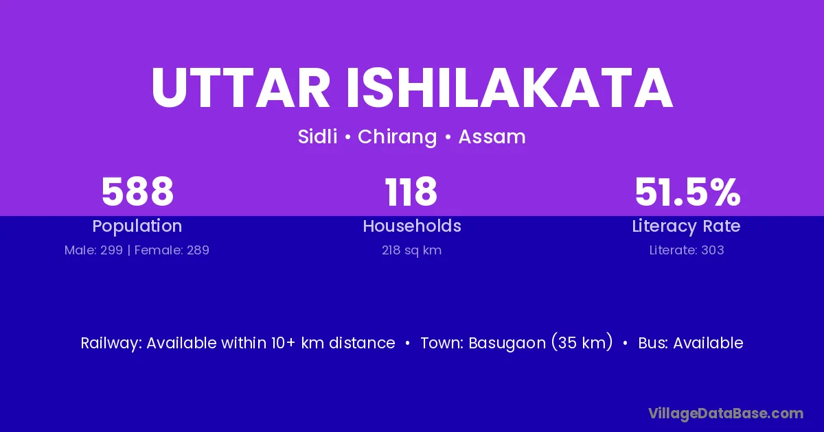 Uttar Ishilakata village has a total population of 588 people, of which 299 are males and 289 are females.