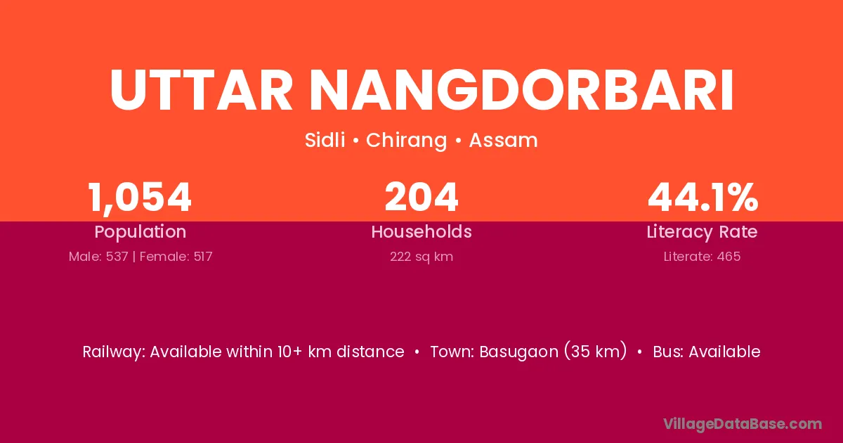 Uttar Nangdorbari village has a total population of 1,054 people, of which 537 are males and 517 are females.