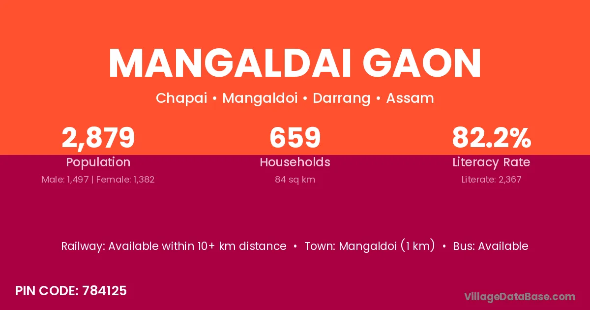 There are approximately 659 households in Mangaldai Gaon village.
