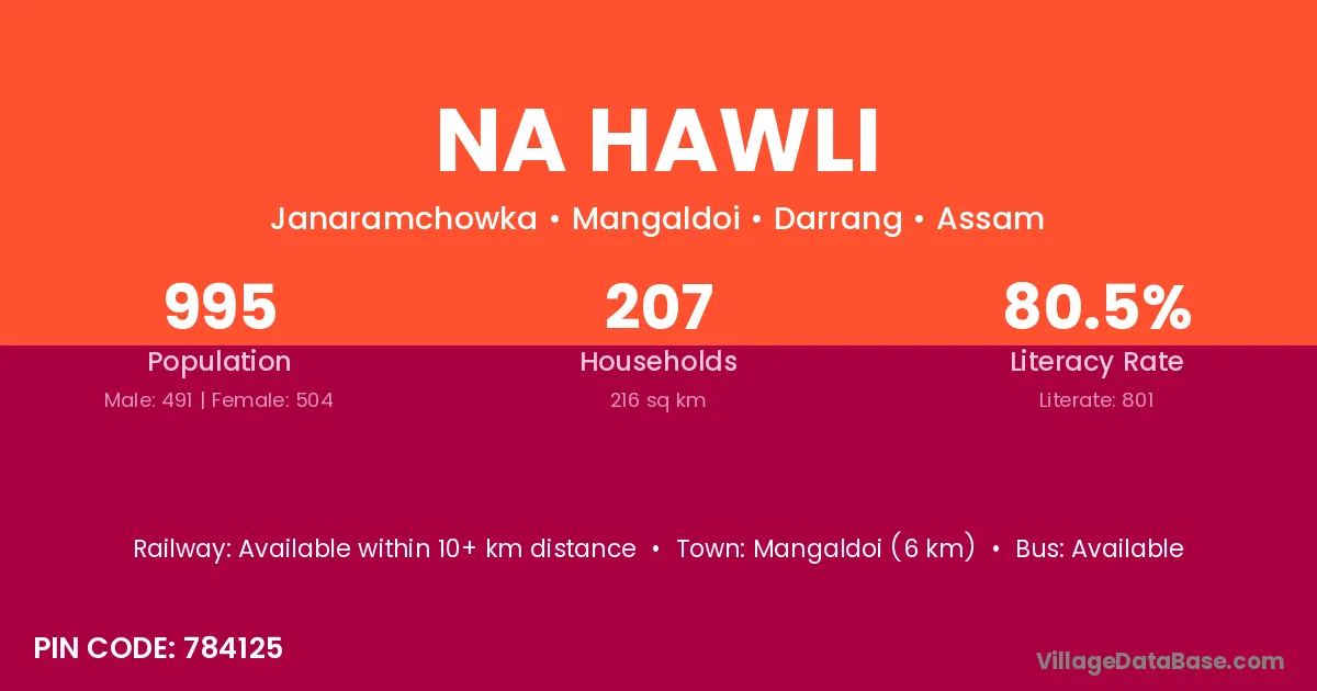 Mangaldoi (6 km) is the nearest town to Na Hawli village for major economic activities and is located approximately 6 km away.