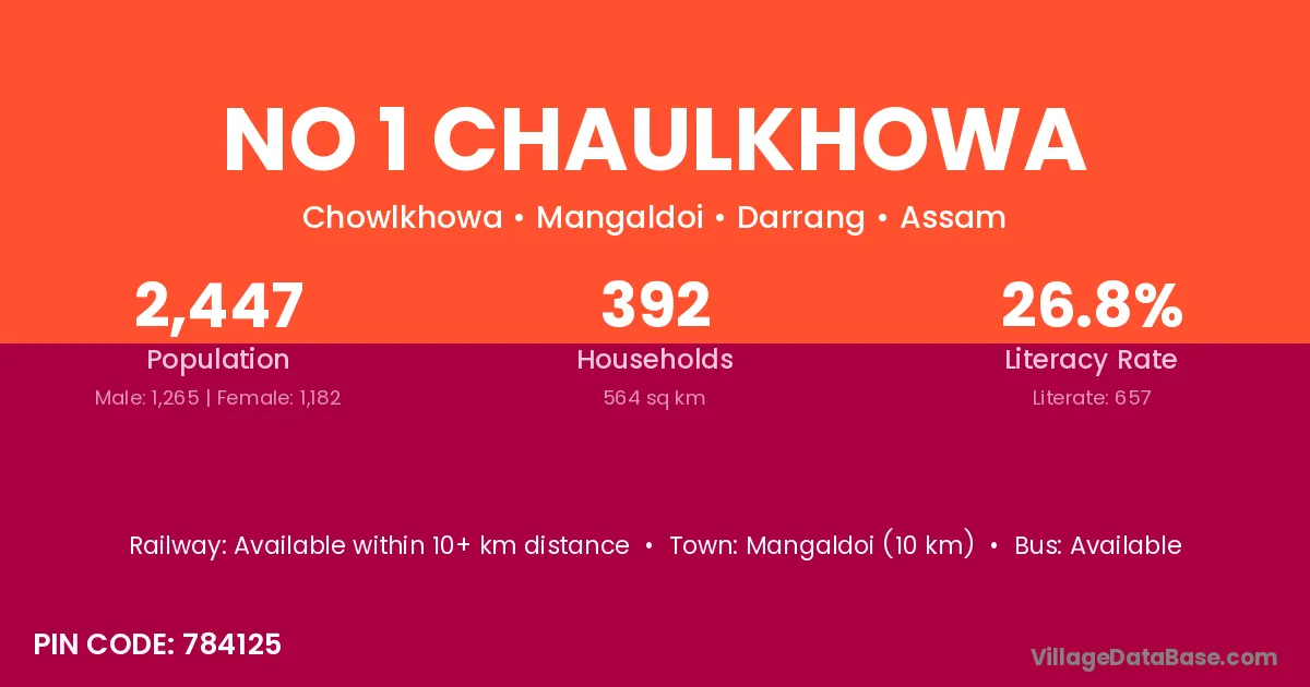 No 1 Chaulkhowa village has a total population of 2,447 people, of which 1,265 are males and 1,182 are females.