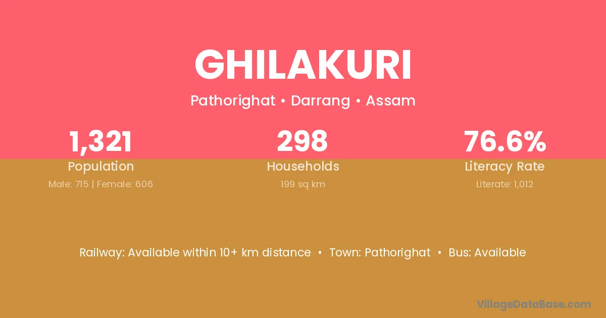 Ghilakuri village has a total population of 1,321 people, of which 715 are males and 606 are females.