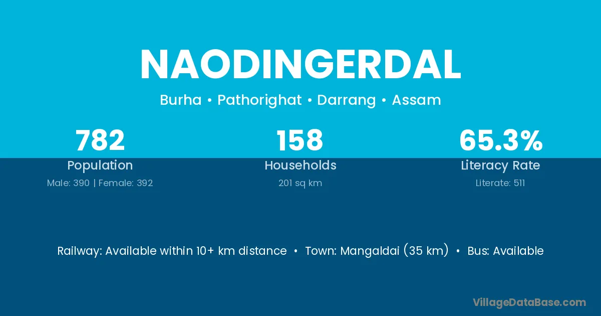 Mangaldai (35 km) is the nearest town to Naodingerdal village for major economic activities and is located approximately 35 km away.