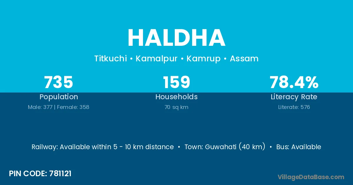 Mangaldoi (25 km) is the nearest town to Haldha village for major economic activities and is located approximately 25 km away.