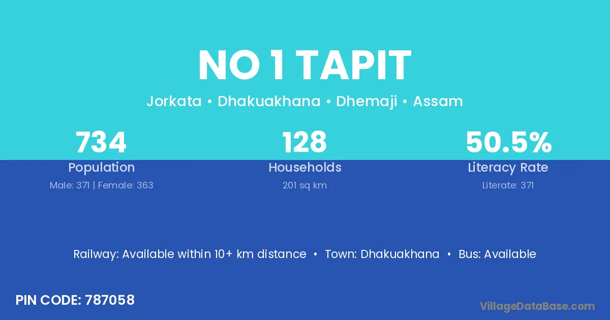 No 1 Tapit village has a total population of 734 people, of which 371 are males and 363 are females.