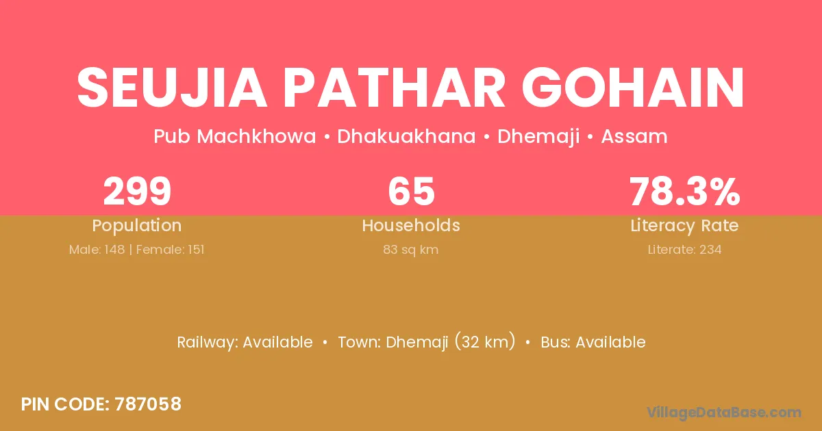 According to Census 2011 information, the village code of Seujia Pathar Gohain village is 787058.