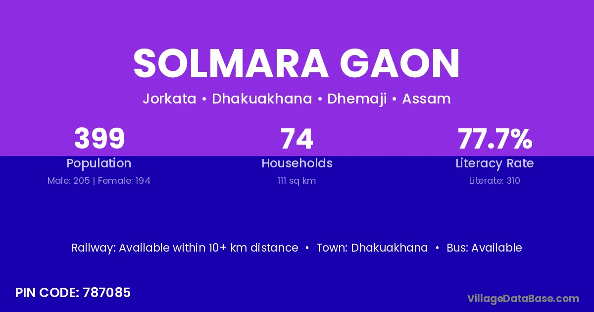 Dhakuakhana is the nearest town to Solmara Gaon village for major economic activities