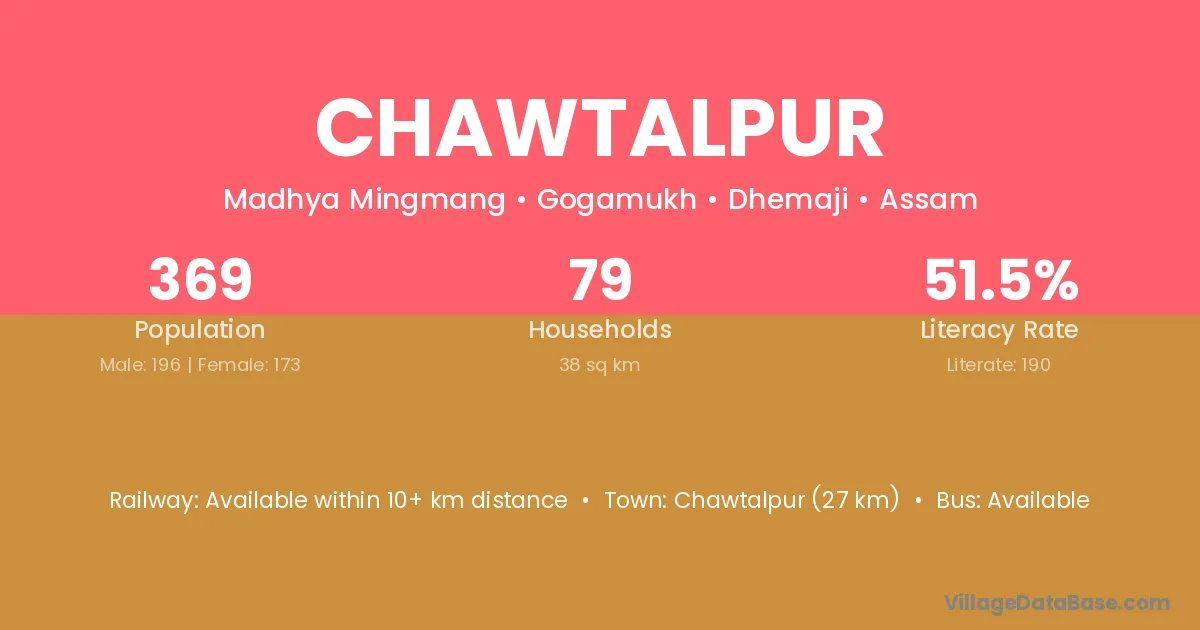 Chawtalpur village has a total population of 369 people, of which 196 are males and 173 are females.