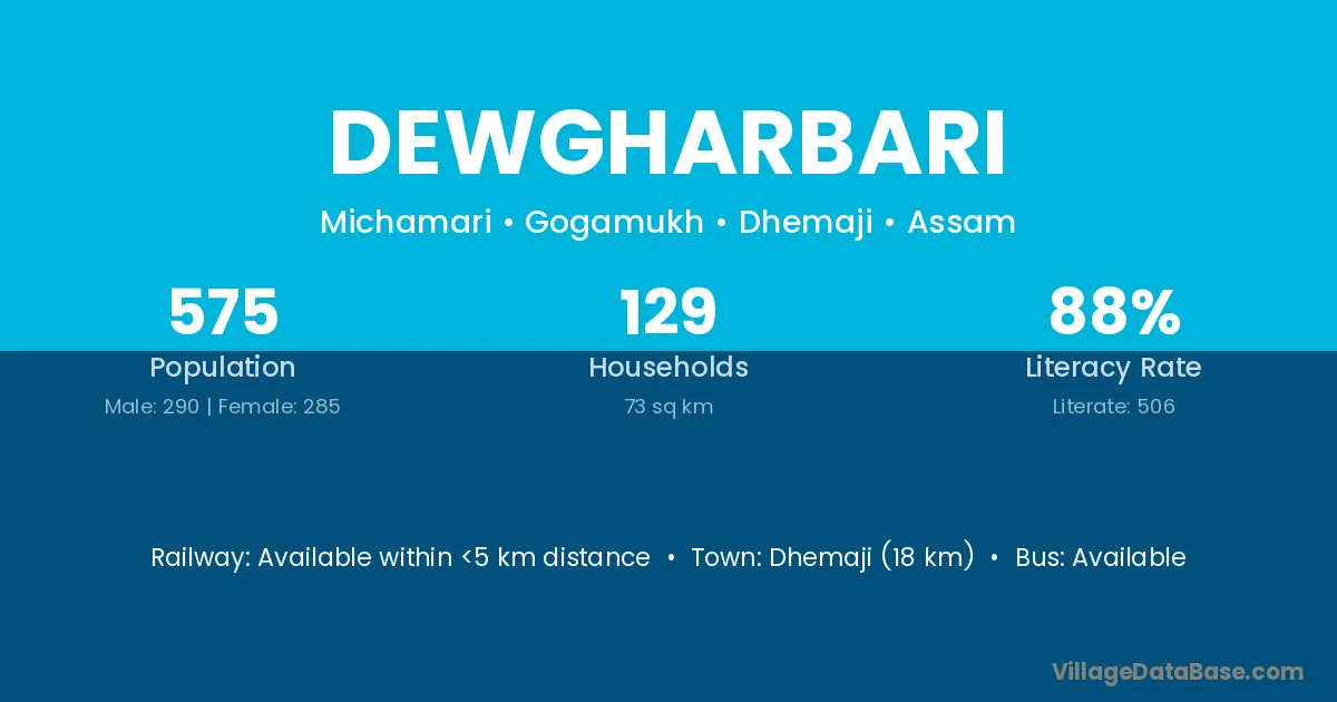 Dewgharbari village has a total population of 575 people, of which 290 are males and 285 are females.