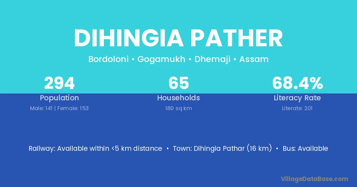Dihingia Pather village has a total population of 294 people, of which 141 are males and 153 are females.